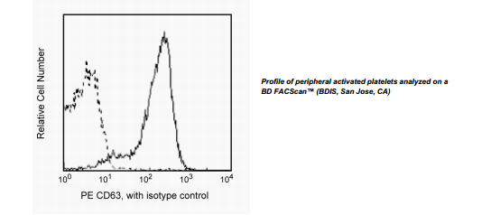 The H5C6 monoclonal antibody reacts with CD63. CD63 is a 53 kDa, type III lysosomal glycoprotein, expressed on activated platelets,