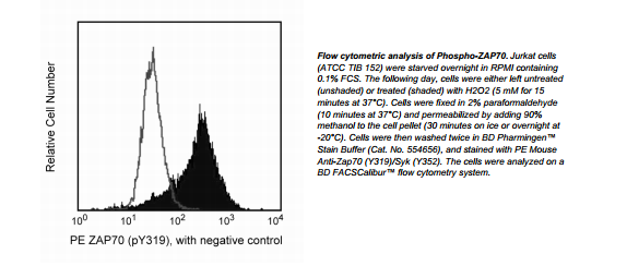 phosphorylation site with ZAP70 (Y319). The PE-conjugated format has been evaluated using human and mouse model systems. The