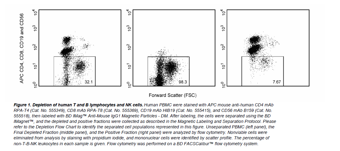 Leukocytes are labelled with BD IMag™ Anti-Mouse IgG1 Magnetic Particles - DM according to the Magnetic Labeling and Separation