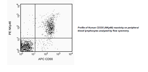 The 9E2/Nkp46 monoclonal antibody specifically binds to CD335. CD335 is also known as the Natural killer cell p46-related protein