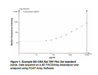 This BD™ CBA Flex Set contains one vial each of Capture Bead and PE Detection Reagent and two vials of Standard. The Capture Bead and PE Detection Reagent components of this flex set have been formulated to a 50x concentration to ensure product performance when multiplexed. The Standard component is lyophilized and should be transferred to a 15 mL polypropylene tube for reconstitution. When reconstituted in 4.0 mL Assay Diluent, the standard has a protein concentration of 10,000 pg/mL. Discard unused reconstituted standard, do not store or reuse. Store lyophilized standard and other components at 4°C. Protect Capture Beads and the PE Detection Reagent from prolonged exposure to light.