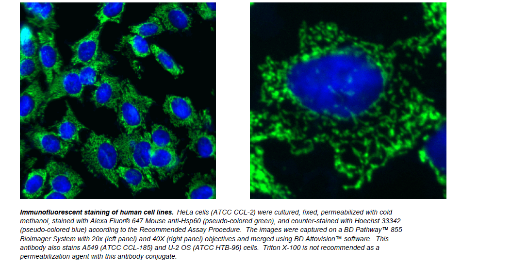 The antibody was conjugated to Alexa Fluor® 647 under optimum conditions, and unreacted Alexa Fluor® 647 was removed.