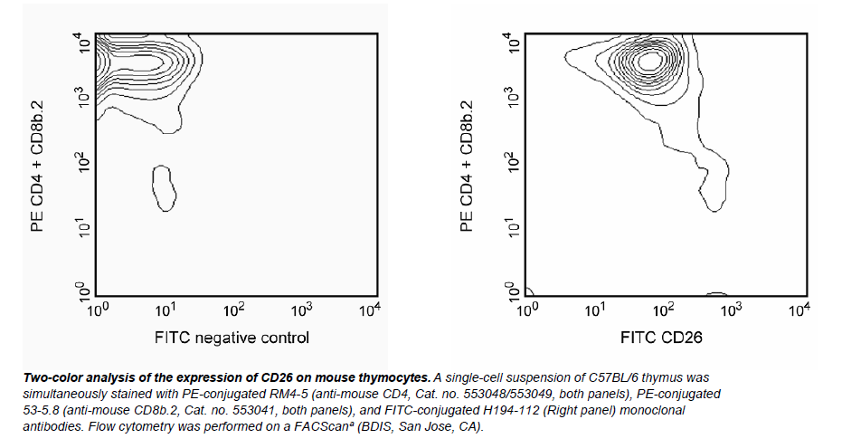The H194-112 antibody reacts with thymocyte-activating molecule (THAM), homologous to human CD26 (dipeptidyl peptidase IV, DPP IV).
