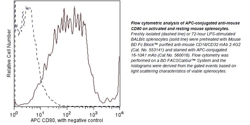 that the 16-10A1 mAb may block the binding of rat anti-CD80 mAb clone 1G10 (Cat. No. 553368). In addition, it has been reported that the