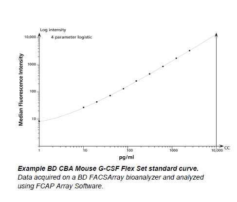 The BD™ CBA Mouse G-CSF Flex Set is a bead-based immunoassay capable of measuring mouse Granulocyte-Colony Stimulating Factor