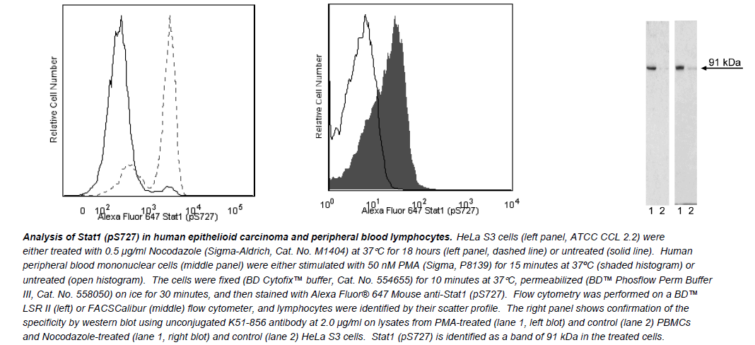 The K51-856 monoclonal antibody recognizes the phosphorylated S727 in the C-terminal transactivating domain of human Stat1α; this site is not