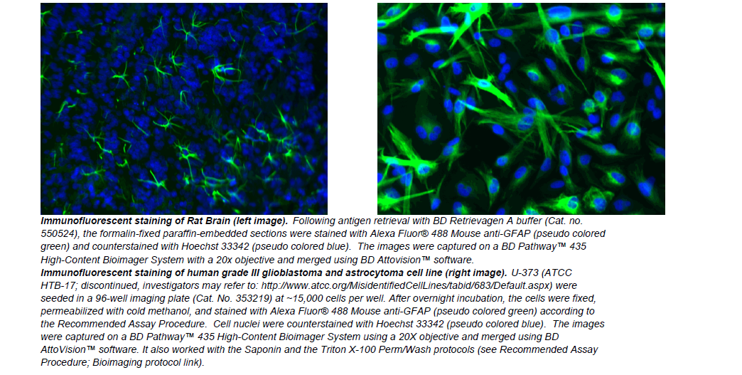GFAP (Glial Fibrillary Acidic Protein) is the major protein of glial filaments in differentiated astrocytes. BD Biosciences offers a panel of