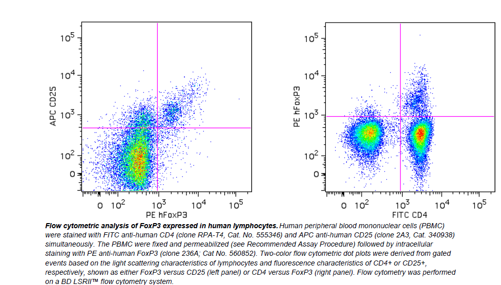 The 236A/E7 antibody reacts with the human FoxP3 (Forkhead box protein P3) transcription factor, a member of the forkhead or winged helix