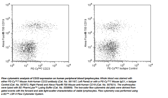 The M-L233 antibody specifically binds to the low affinity receptor for human IgE, FcεRII/CD23. CD23 is a type II membrane protein which can be expressed by B cells, monocytes, macrophages, eosinophils, platelets, and dendritic cells. CD23 can mediate IgE-dependent cytotoxicity and phagocytosis by macrophages and eosinophils. Soluble CD23 (sCD23) can be released by CD23-positive cells as a result of proteolytic cleavage of membrane CD23. Larger fragments of sCD23 (e.g., 25-37 kDa) retain their IgE-binding capacity whereas smaller fragments (i.e., ≤ 12 kDa) do not. Soluble CD23 may have immunoregulatory effects on the growth and differentiation of B cells and other cell types.