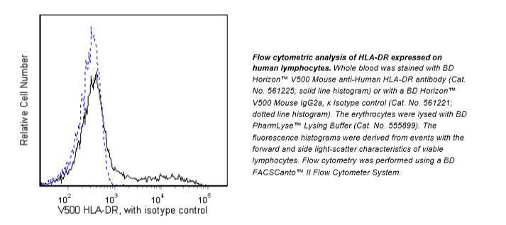 The antibody is conjugated to BD Horizon™ V500, which has been developed for use in multicolor flow cytometry experiments and is