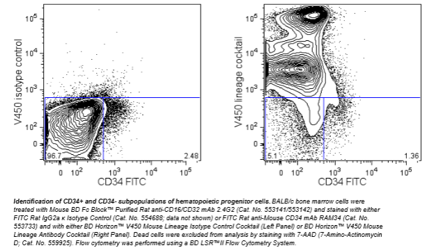 combined with the BD Horizon™ V450 Mouse Lineage Antibody Cocktail, and the BD Horizon™ V450 Mouse Lineage Isotype Control