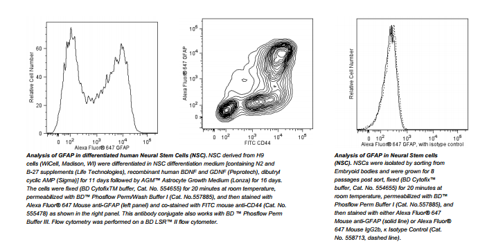 GFAP (Glial Fibrillary Acidic Protein) is the major protein of glial filaments in differentiated astrocytes. BD Biosciences offers a panel of