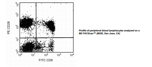 5.The antibody was conjugated with R-PE under optimum conditions, and unconjugated antibody and free PE were removed.