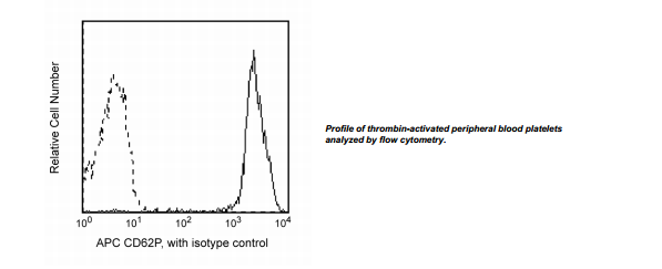 Reacts with the 140 kDa membrane glycoprotein, P-Selectin, formerly known as platelet activation-dependent granule membrane protein