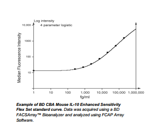 instructions in the BD CBA Mouse Enhanced Sensitivity Master Buffer kit, the top standard point for this assay is 200,000 fg/mL. Discard