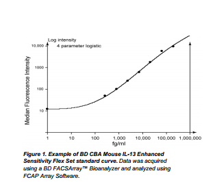 instructions in the BD CBA Mouse Enhanced Sensitivity Master Buffer kit, the top standard point for this assay is 200,000 fg/mL. Discard
