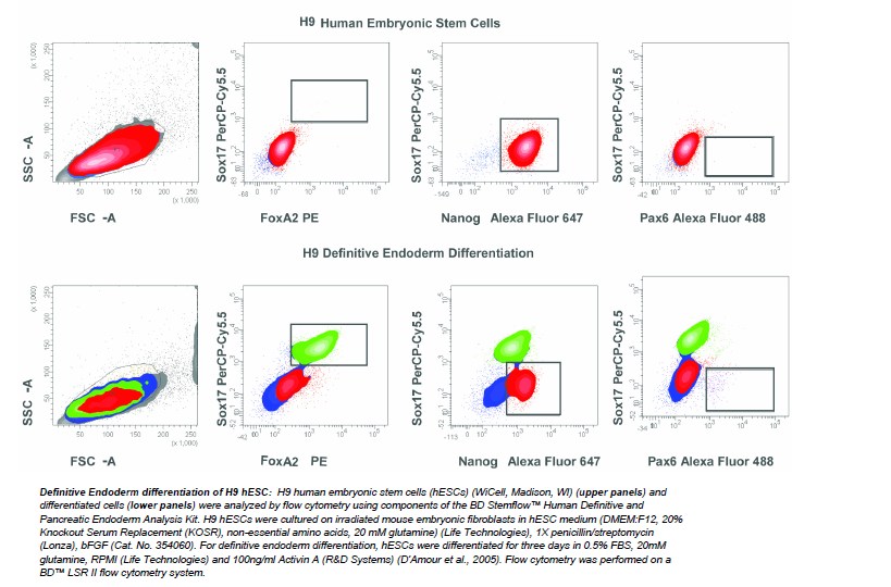 The BD Stemflow™ Human Definitive and Pancreatic Endoderm Analysis Kit contains a combination of mouse monoclonal antibody