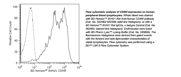 form the α6 β4 complex, also known as the laminin and kalinin receptor. CD49f is expressed mainly on T cells, monocytes, platelets, epithelial