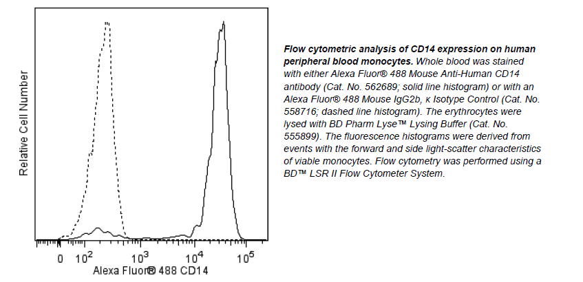 chain glycoprotein expressed at high levels on monocytes. Additionally, this CD14-specific antibody reacts with interfollicular macrophages,