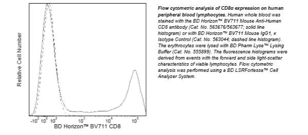 The antibody was conjugated to BD Horizon™ BV711 which is part of the BD Horizon™ Brilliant Violet™ family of dyes. This dye is a