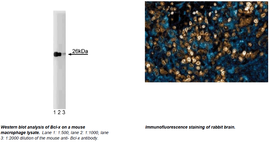 Bcl-x is related to the Bcl-2 protein and can function independently of Bcl-2 in regulating apoptosis (programmed cell death). The bcl-x