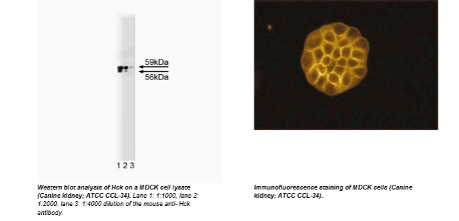 elevated during macrophage activation. Hck also has been reported to be expressed in undifferentiated embryonic stem (ES) cells. This