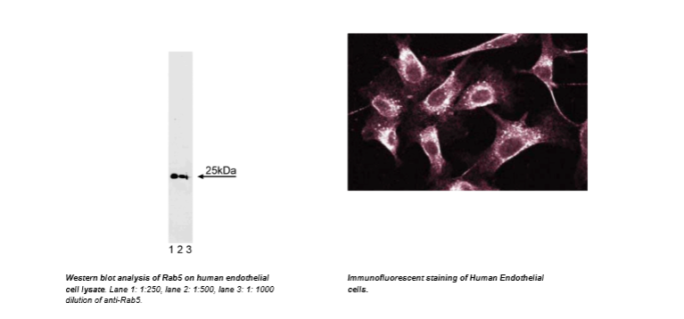 Rab5 is a low molecular weight GTP-binding protein that plays a role in endocytic vesicle traffic. Like other Rab proteins, Rab5 has