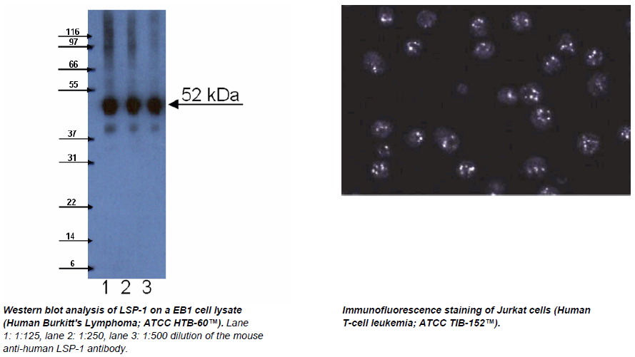 macrophages and is involved in lymphocyte signal transduction. LSP-1 is a cytoplasmic membrane-bound protein that, following activation,