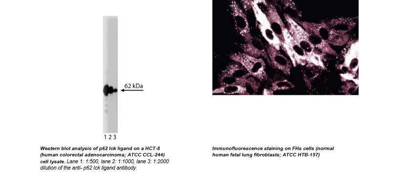 phosphorylates p62. p62 lck ligand binds to the dimerization