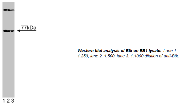 Bruton's tyrosine kinase (Btk) is a nonreceptor tyrosine kinase whose function is critical for proper B cell development and signaling. It is a