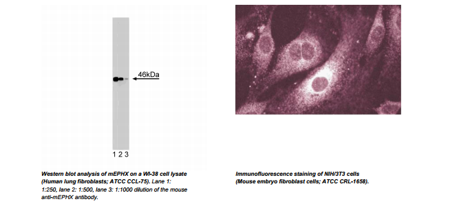 Microsomal epoxide hydrolase (mEPHX/mEH/EPHX) is a bifunctional membrane protein that plays a role in the metabolism of reactive epoxide intermediates and in hepatocyte uptake of bile acids. mEPHX protein and nucleic acid sequence is evolutionarily conserved in human, rats, and rabbits and mEPHX protein expression is found in the embryo and multiple organs. Cellular expression of mEPHX has been localized to both the ER and sinusoidal plasma membrane. In the ER, mEPHX is expressed in two topological orientations. The type I orientated (Ccyt/Nexo) mEPHX remains in the ER, while the type II orientated (Cexo/Ncyto) mEPHX is localized to the plasma membrane. mEPHX metabolizes DMBA to both inert metabolites and metabolites that are electrophilic and possibly carcinogenic. mEPHX null-mice have been shown to be highly resistant to DMBA-induced carcinogenesis using skin cancer bioassays. Thus, mEPHX may have protective effects, such as bile acid uptake and reactive epoxide metabolism, as well as harmful effects related to the production of carcinogens.