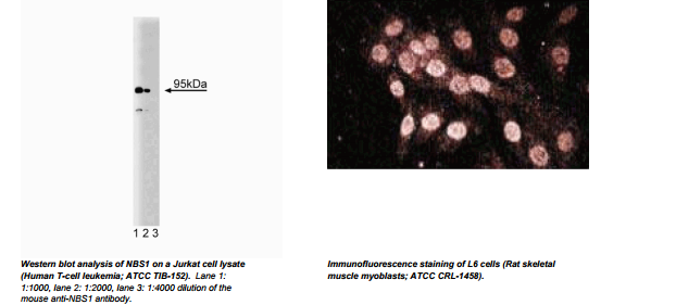 Nijmegen Breakage Syndrome (NBS) is characterized by extreme radiation sensitivity and chromosomal instability. The NBS1 gene product, p95/nibrin/NBS1, forms a complex with Rad50 and Mre11. Cells deficient in this complex have problems with DNA double-strand break repair, cell cycle checkpoint control, and telomere length maintenance. NBS1 contains a forkhead-associated domain (FHA) and a breast cancer carboxy-terminal domain (BRCT) in the N-terminal region. Both of these domains have been found in DNA-damage responsive cell cycle checkpoint proteins. The complex containing NBS1, Rad50, and Mre11 possesses manganese-dependent single stranded DNA endonuclease and 3' to 5' exonuclease activities. In addition, NBS1 is required for DNA-damage dependent phosphorylation of Mre11. This phosphorylation may be required for proper nuclear localization of the NBS1-Rad50-Mre11 complex to sites of DNA double-strand breaks. NBS1 interacts directly with telomere repeat binding factor, TRF1, via its C-terminal region, and both NBS1 and Mre11 co-localize with TRF1 at promyelocytic leukemia nuclear bodies. Thus, the NBS1-Rad50-Mre11 complex may be important for both DNA damage repair, and telomere length maintenance.