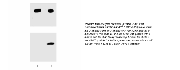 The 4/P-STAT3 monoclonal antibody recognizes the phosphorylated Y705 of Stat3.