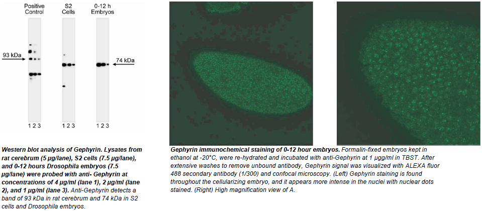 gephyrin mRNA is found most abundantly in brain. Alternative splicing produces at least five different mRNAs. Gephyrin colocalizes and