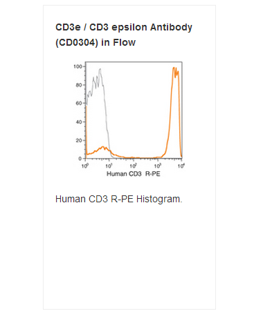 CD3, Mouse Anti-Human, (R-PE); R-PE conjugated Monoclonal antibody specific to Human CD3. This antibody is validated for use in Flow Cytometry. Anti-CD3 recognizes the expressed product of the CD3D gene.