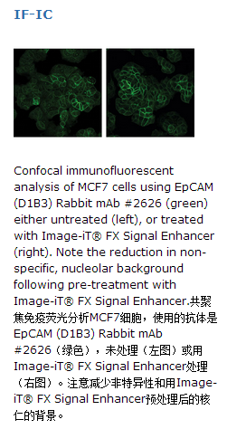Alexa Fluor®和其他许多阴离子荧光染料和蛋白质可以非特异性地结合阳离子细胞和组织组分。通过有效地阻断这些非特异的静电作用,Image-iT® FX Signal Enhancer能够大大改善免疫标记的细胞和组织的信噪比。Image-iT®是一种液体,在用荧光探测剂染色前,可直接用于有固定的可渗透化处理的细胞或组织样品的载玻片或者盖玻片。