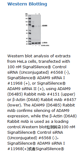 Storage: ADAM9 siRNA II is supplied in RNAse-free water.