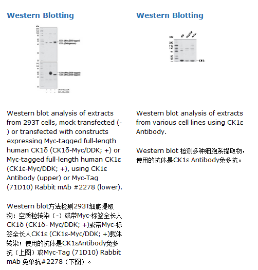 CK1ε Antibody recognizes endogenous levels of total CK1ε protein. This antibody does not cross-react with CK1δ.