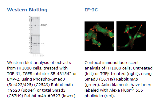 Smad3 (C67H9) Rabbit mAb 【子货号:#9523,包装:40 µl,,运保温度:–20°C】