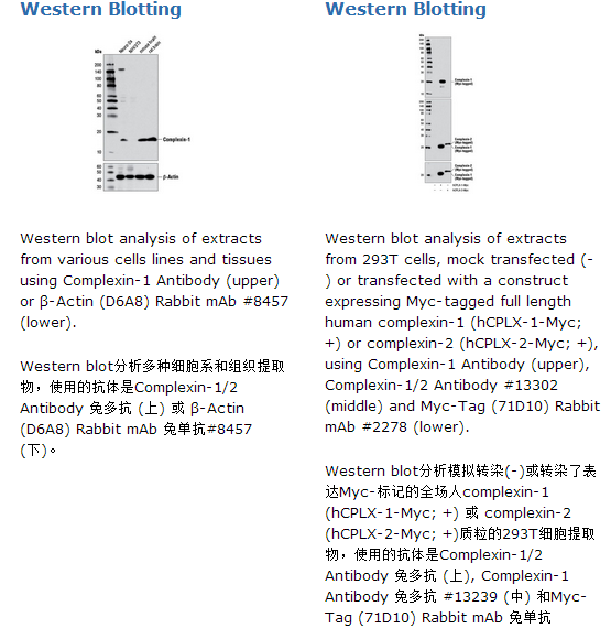 Complexin-1 Antibody recognizes endogenous levels of total complexin-1 protein. This antibody does not cross-react with complexin-2.