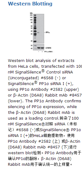 SignalSilence®PP1α siRNA I inhibits human, mouse and rat PP1α expression.