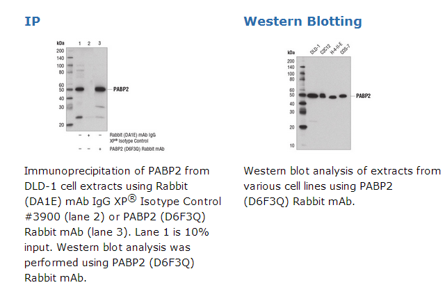 PABP2 (D6F3Q) Rabbit mAb recognizes endogenous levels of total PABP2 protein.