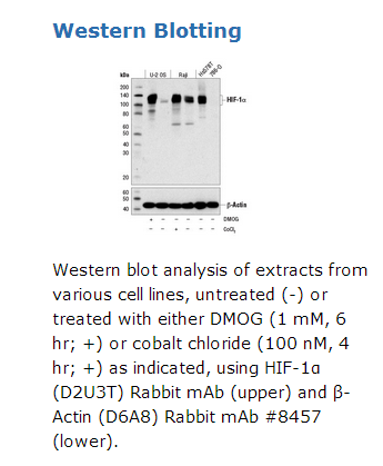 HIF-1α (D2U3T) Rabbit mAb recognizes endogenous levels of total HIF-1α protein.