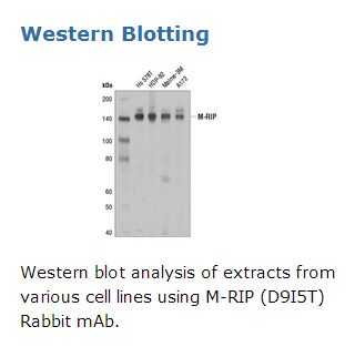 M-RIP (D9I5T) Rabbit mAb recognizes endogenous levels of total M-RIP protein.