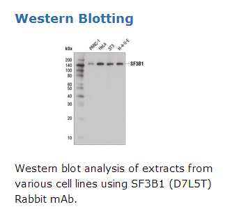 SF3B1 (D7L5T) Rabbit mAb recognizes endogenous levels of total SF3B1 protein.