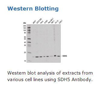 Polyclonal antibodies are produced by immunizing animals with a synthetic peptide corresponding to residues surrounding Leu153 of human SDH5 protein. Antibodies are purified by protein A and peptide affinity chromatography.