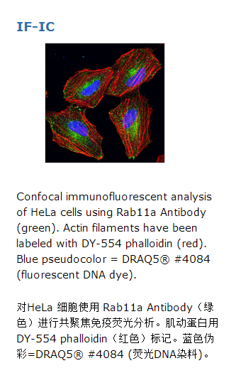 Rab11a Antibody识别内源性的Rab11a总蛋白。该多克隆抗体用与人类Rab11a中Arg184位点附近的氨基酸序列对应的人工合成肽段免疫动物而制成。该抗体使用蛋白A和蛋白亲和层析纯化而得。