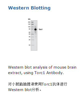 Torc1 Antibody detects endogenous levels of total Torc1 protein and will not cross-react with Torc2 or Torc3 proteins.