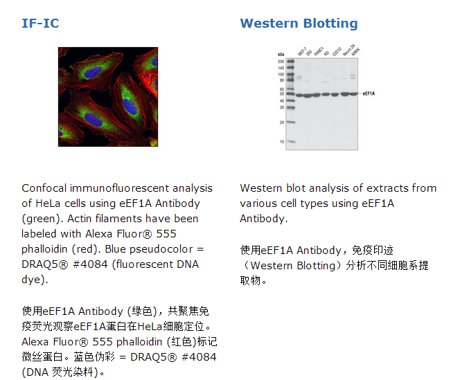 eEF1A Antibody detects endogenous levels of total eEF1A protein.