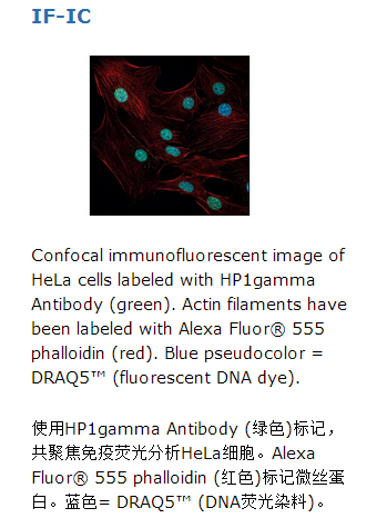 HP1γ Antibody detects endogenous levels of total HP1gamma protein. The antibody does not cross-react HP1alpha or HP1beta proteins.